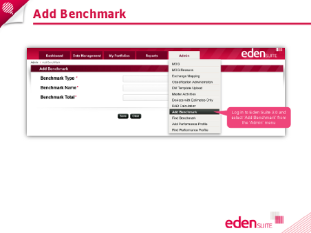Benchmarks may be set to provide guideline and comparison values for reporting at a common “type” level. Benchmarks may be created for an Asset Type or an Organisation Type.